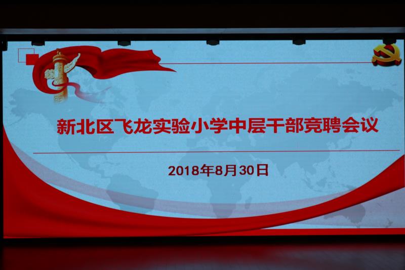 8月30日,根据学校工作计划安排,飞龙实验小学全体教职工在报告厅举行了中层干部竞聘会议,本次会议由沈丽亚副校长主持,区社会事业局教育人事处李健主任协同其他六位校内、外的老师,组成了专家评审组,和飞龙实小的教职工们共同参加了此次评选过程。