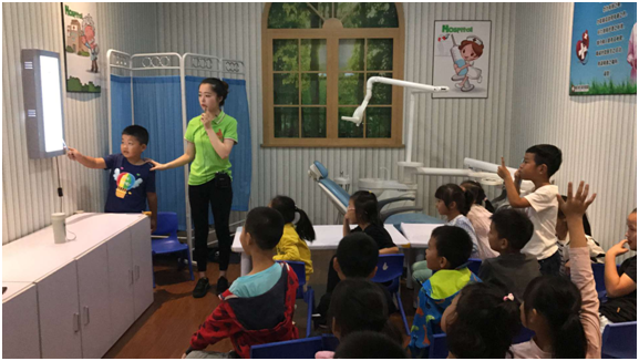 在这里孩子们可以体验不同的职业,有的孩子穿上了一身警服,英姿飒爽地敬着队礼;有的孩子们穿上白大褂,带上小工具,扮作小医生在给其他小朋友做检查呢;还有的小朋友站上了T台,气场全开,当了一回小模特呢……孩子们兴奋不已,对不同的职业充满了好奇与向往。一次次的体验为孩子们展开了一幅人文社会的生活画卷,培养了孩子们的动手实践能力、沟通表达能力、想象力和责任感。