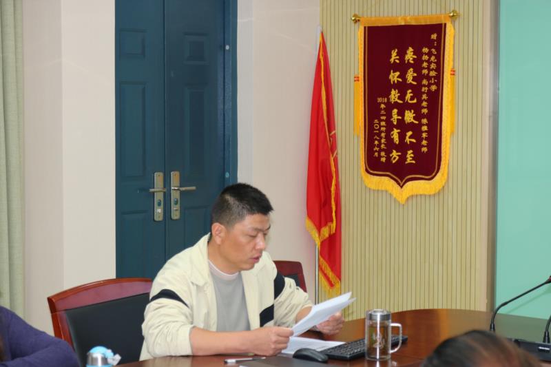 10月25日下午,飞龙实验小学全体党员齐聚五楼会议室,召开月度党员活动,活动由支委会书记余煜同志主持。
