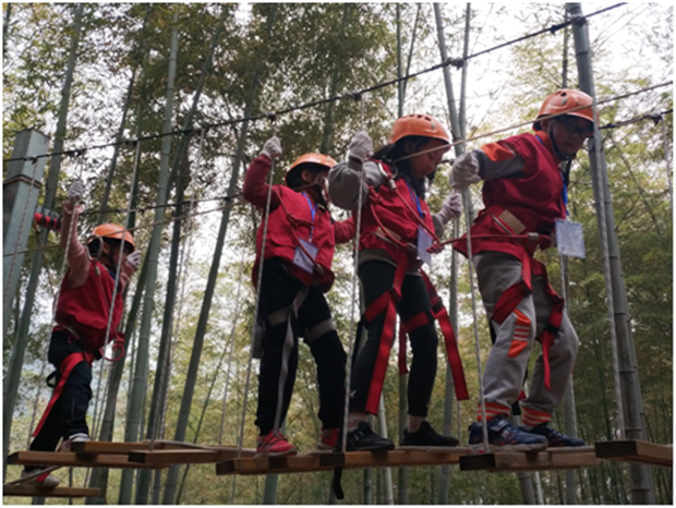 简单地互动过后两组小队进行了不同的活动。分别是四年级的挖笋活动以及二年级的丛林挑战。在教练的指导以及带队老师的帮助下,小记者们穿好安全装备准备战斗,一个个精神抖擞,毫不胆怯,仔细而又大胆地挑战一关又一关。