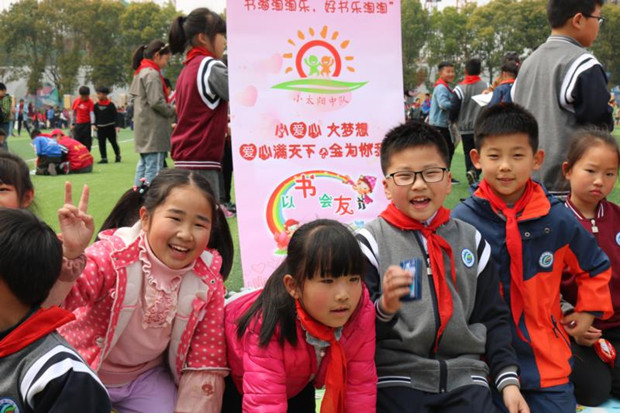 “同学,走过路过不要错过;同学,我们今天清仓大甩卖;同学,我们买书送糖果……”4月4日中午,飞龙实验小学第二届“书乐淘淘”跳蚤书市活动在操场举行。