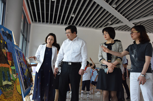 余煜校长代表学校对领导们的到来表示诚挚的感谢,感谢区、街道领导一直以来对学校办学的关心与支持。慰问中,领导们与孩子们亲切交谈,勉励小朋友在崭新的飞龙校园里,努力学习,多元发展,快乐成长。乔区长一行还饶有兴趣地参观了校主题为“点燃艺术,献礼华诞”流动画展,