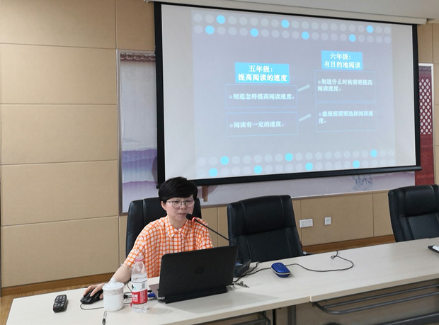 新学期在统编版教材全面铺开的局势下,得语文者得天下,这句话在朋友圈流传广泛。“一定要读书” 已然成为一种共识,那读什么书,怎么去读,要读出什么?22日下午,我校有幸邀请到常州市教育科学研究院的语文教研员朱洁如老师来为大家做《新视域下的阅读引领 与读书分享》暑期校本培训。