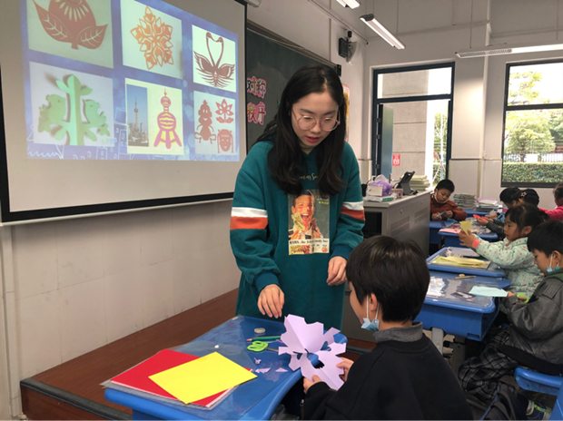 本次上课课题为美术三年级上册《对称美、秩序美》,高老师作为一名青年教师,这是在即将进行的首次区公开展示课前进行的第三次组内磨课。在备课组长徐老师和的带领下,美术组进行了一次又一次的集体备课。高老师通过反复磨合,不断熟悉学情、透析目标,取长补短,反复优化设计方案,调整课堂教学。