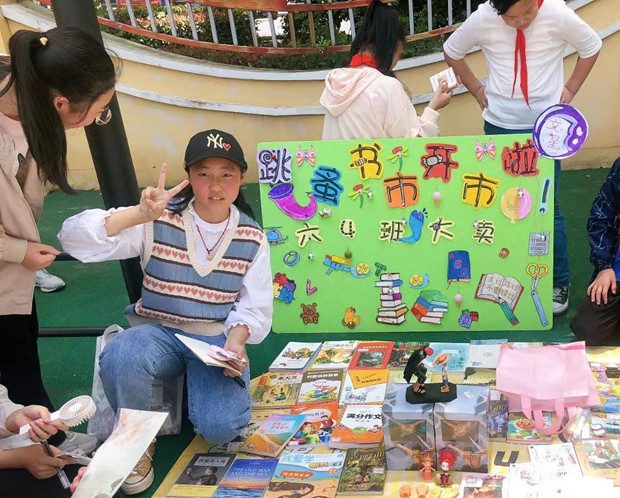 伴随着活动的进行,市场里的“顾客”越来越多,孩子们脸上洋溢着幸福和快乐,也许是淘到了自己喜欢的好书,也许是因为成功地把书推荐给了别人,也许是因为第一次体验了做买卖的滋味……许多老师也忍不住加入其中,大家都满载而归。一本本图书就像“小跳蚤”一样,从一个“顾客”的手里“跳”到另一个“顾客”手里,让原本尘封的图书资源活起来、动起来。