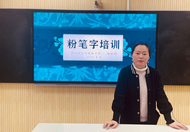 江南仲春天,细雨色如烟。为了提高新教师书写能力,夯实教学基本功,4月4日下午,飞龙实小全体新教师齐聚学校录播室参与了粉笔字培训。本次培训邀请北郊高级中学的杨铭妍老师莅临指导。