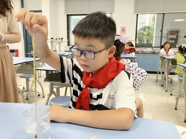 本次抽测以激励性、发展性和参与性为原则,结合每个年级段的实验教学重点,制定了详细而科学的考核细则和评分标准,一至六年级的抽测项目分别为:判断物体里面是否有空气、自制指南针、测量气温、测量水温、用平衡尺探究杠杆省力秘密、制作食物链,随机抽取七位科学老师所教班级的部分学生,采用现场评分的方式,对学生的实验操作情况进行客观公正的评价。学生们对本次抽测活动也十分重视,操作规范,实事求是,能采用合适的形式对实验结果进行记录,表达自己的观点。
