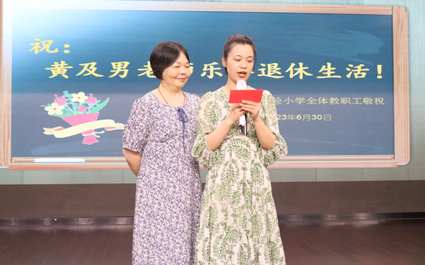 光耀飞龙,感恩有你。为感谢老教师无私奉献,激励年轻教师教育情怀,6月30日下午,飞学校为黄及男老师举办了温馨感人的退休仪式。仪式由行政办张梁主任主持。