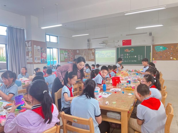 第一节课是新校实验小学的刘明月老师执教的手工课《装饰瓶》。教师结合三年级孩子的身心特点,设置小组学习单,通过合作学习解决本节课的重难点。作业设计很有创意,综合运用多学科知识,紧密联系生活。