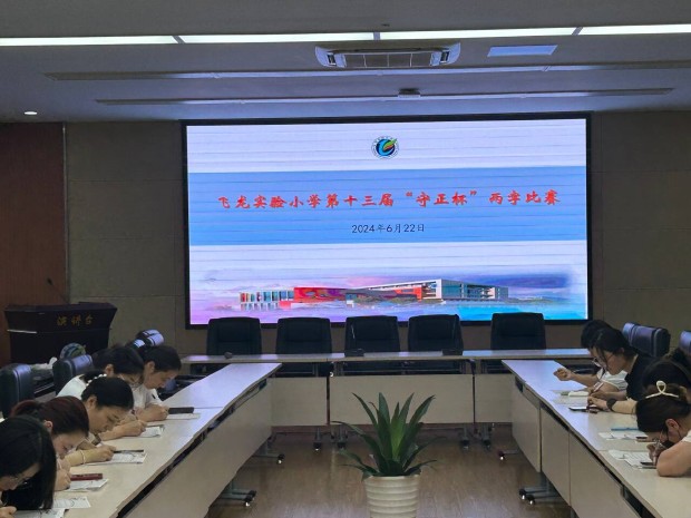 为夯实教师基本功、提供展示风采的平台,6月22日下午四点,飞龙实验小学举办了第十三届“守正杯”教师钢笔字、粉笔字两字比赛。比赛以“笔尖绽芳华,粉墨展师风”为主题,共有100多位教师参加。