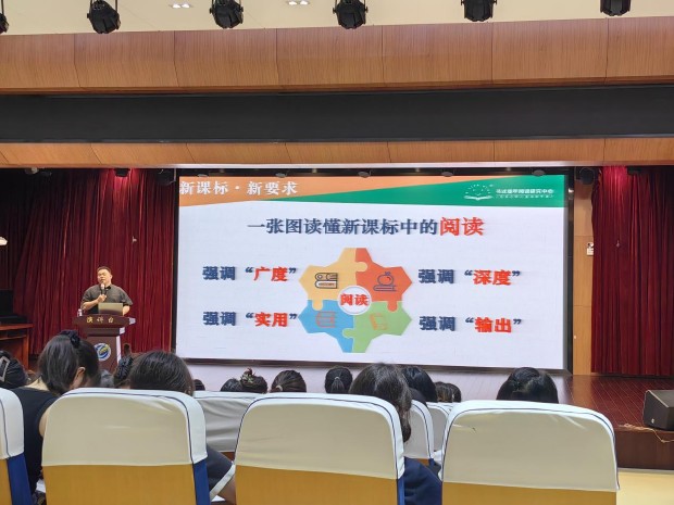 姚老师用现场互动的方式带领大家回顾新课标三大学习任务群,再次梳理新课标中阅读的广度、深度、实用和输出四个维度,强调阅读不仅仅依托兴趣、经验进行,需要教师的专业性支撑。
