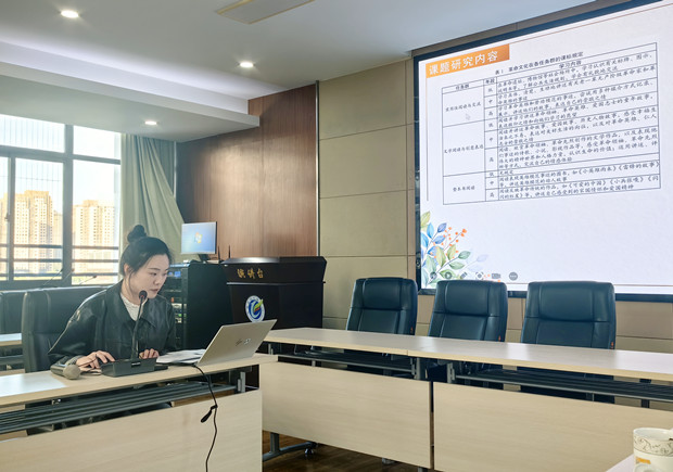 首先,市区级十四五备案课题主持人吴丽丽老师以《实践育人:小学数学跨学科作业研究》为题、袁盼老师以《积极心理学视域下的同伴关系在小学生心理健康教育中的应用》为题、丁颖老师以《基于真实情境的小学语文单元整体教学实践研究》为题,赵娟老师以《链接校园新空间的语文作业实践研究——以中年段作业设计为例》为题,周闪闪老师以《小学信息科技和小学科学跨学科主题学习的行动研究》为题,刘姝言老师《英语学习活动观视角下小学英语阅读教学的实践研究》为题,分别围绕课题研究历程、已经取得成果、后期发展规划等维度展开论述。各主持人围绕研究主题表述清晰、规划明确、实践落地、成果明显。