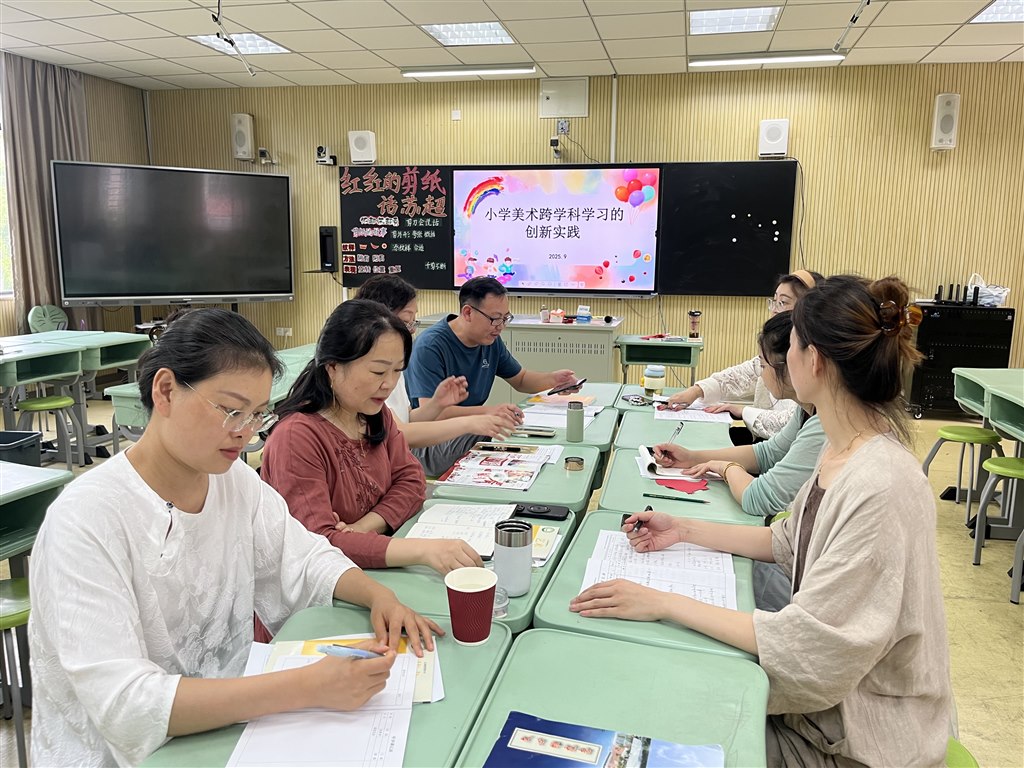 为激活非遗文化生命力,落实叶圣陶“生活化教育”思想,9月30日,飞龙实验小学以“剪纸非遗”为核心,在二楼录播教室开展“叶圣陶教育思想引领下中小学跨学科主题活动创新实践”专题教研,共探非遗与课堂融合新路径。本次活动由徐文英组长主持,新北区艺术教研员周文雅校长、天宁区艺术教研员蒋春燕老师莅临指导。