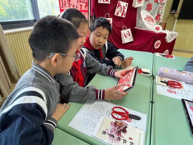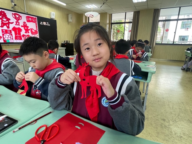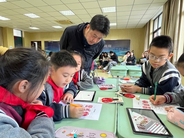 本次教研活动以《红红的剪纸话苏超》为单元主题,以“剪纸是中华优秀传统文化,能传递美好生活祝愿”为大观念,构建“说苏超·探剪纸”“探剪纸·剪故事”“新形式·新生命”三阶段学习任务体系。课程不仅聚焦剪纸技法教学,更通过“纸趣‘苏超’故事艺术展”“AI动态剪纸制作”等拓展活动,让传统剪纸艺术在现代课堂中焕发全新活力。此次活动既是新北区小学美术学科精准教研的生动实践,也是王晓杰名师工作室发挥辐射引领作用的具体体现。学校美术教研组也将以此次活动为契机,把剪纸教学中的创新思路与方法融入日常课堂,让更多孩子在传统文化的熏陶中提升审美素养,切实实现“以美育人,以文化人”的教育目标。