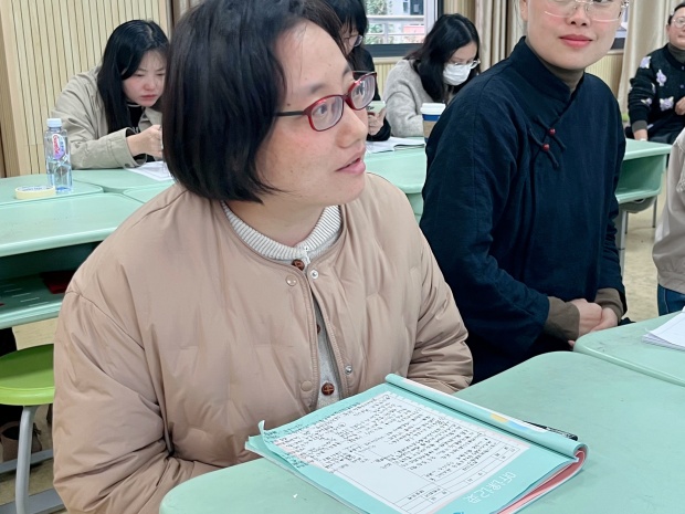 课后研讨环节,王晓杰、胡燕春两位专家带领参会教师围绕两堂研讨课展开深度交流,教师代表与专家们各抒己见,从亮点提炼与优化建议两方面展开深入探讨。