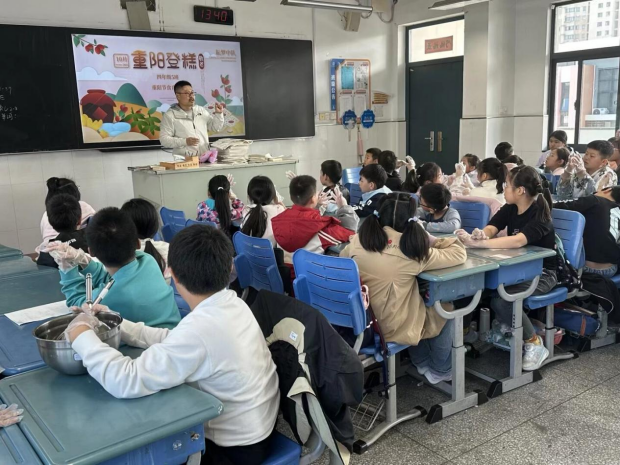 秋意浓,桂花香,佳节又重阳。 为弘扬中华民族尊老、敬老、爱老的传统美德,将感恩教育与劳动实践深度融合,10月28日下午1点,我校四年级成功举办了“家长进课堂”暨重阳节主题食育活动。本次活动别开生面地将传统文化与动手实践相结合,让孩子们在“知”与“行”中,深刻感悟重阳节的内涵。