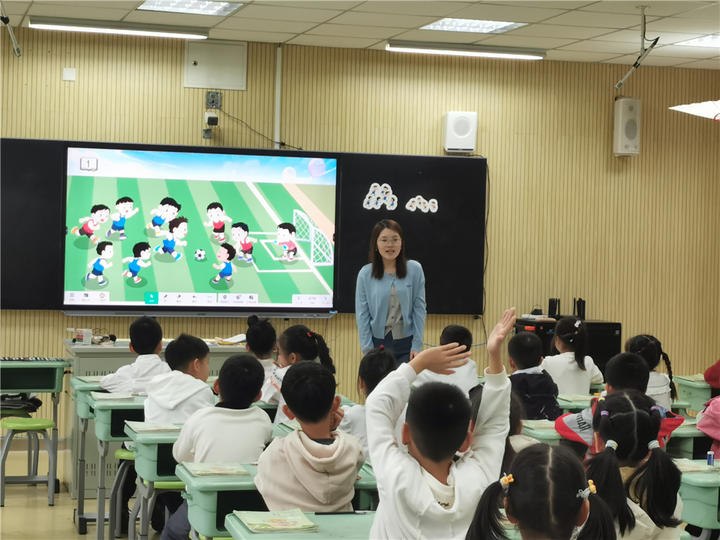 第一节课是由万丽萍老师执教的《得数是10的加法和相应的减法》。万老师紧扣“四生课堂”,以“生本”与“生活”核心,运用图片讲故事的活动,快速唤醒学生已有认知;课堂中设计“抛花片凑10”“填算式配对”“数字闯关游戏”等趣味活动,既贴合低年级学生具象思维特点,又通过互动操作让课堂充满“生动”气息,更让学生在自主分享凑十方法的过程中,捕捉“生成”性教学资源,让“四生课堂”理念自然融入运算教学中。