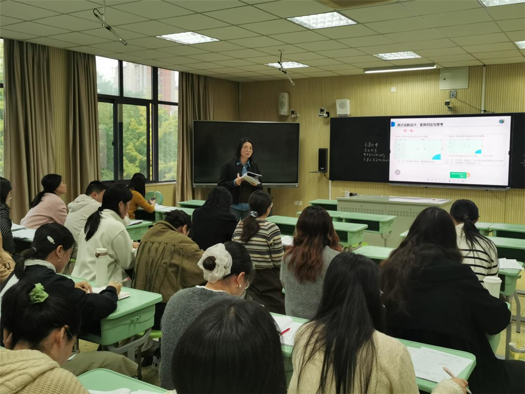 活动最后,恽秋霞副主任结合两节课例,对本次活动给予高度评价。恽主任从新课标要求、新旧教材转变等方面,对王老师同一节课的不同课堂设计进行了深度剖析,并且从不同方面进行了专业讲解。同时也肯定了两位授课教师既紧扣新教材编排逻辑,又聚焦“四生课堂”核心内涵,为新课标下小学数学学段衔接与课堂改革提供了可复制的实践样本。
