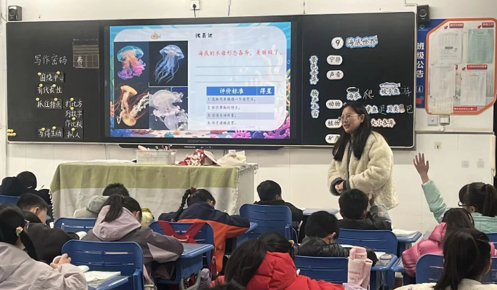 首先,三堂各具特色的教研课为本次活动拉开序幕。刘丹阳老师执教的《海底世界》一课,紧扣“实用性阅读与交流”学习任务群的要求,以“探秘海底世界”为任务驱动,引导学生借助关键语句梳理信息、整合文本。课堂上,孩子们化身小小探秘者,在提取与交流中感受海底世界的奇异与丰富,让“实用性阅读”真正指向生活与运用。