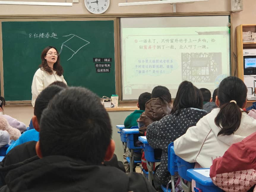 周瑜婷老师执教的《红楼春趣》聚焦古典名著的阅读方法,以“梳理情节—品读人物—感受意趣”为任务链,带领学生走进大观园中的春日趣事。课堂上,周老师既注重阅读策略的渗透,又关注文学审美的熏陶,让学生在名著的浸润中感受传统文化的魅力,展现了高年级文学阅读教学的深度与厚度。