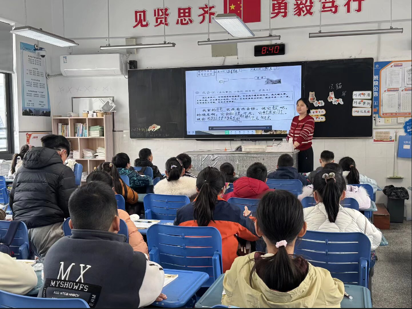 陈婷风老师带来的《猫》则聚焦“文学阅读与创意表达”学习任务群,以“走近老舍笔下的猫”为主线任务。课堂上,陈老师引导学生品味语言、体会情感,在品读中感悟作家对猫的喜爱之情,并尝试迁移表达。孩子们在文字中触摸情感的温度,在读写结合中绽放创意的火花,让课堂洋溢着浓浓的语文味。